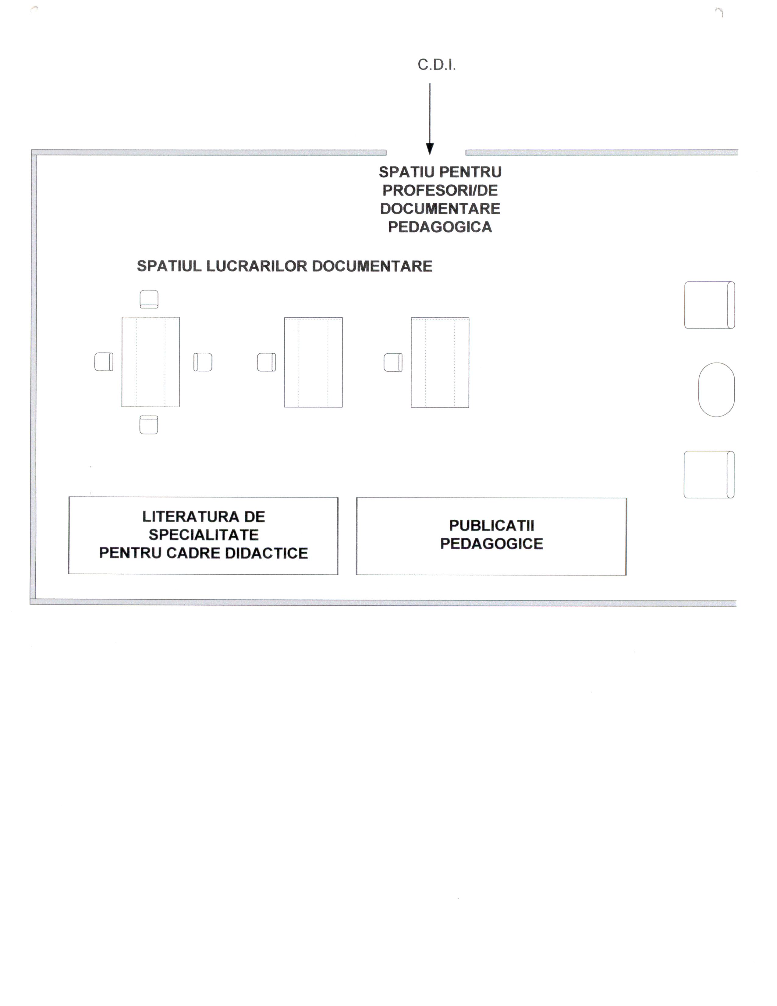 - Regulamentul intern CDI: cuprinde reguli, de comportament, organizarea fondului de carte, condiţii de împrumut şi restituire, penalităţi, etc.