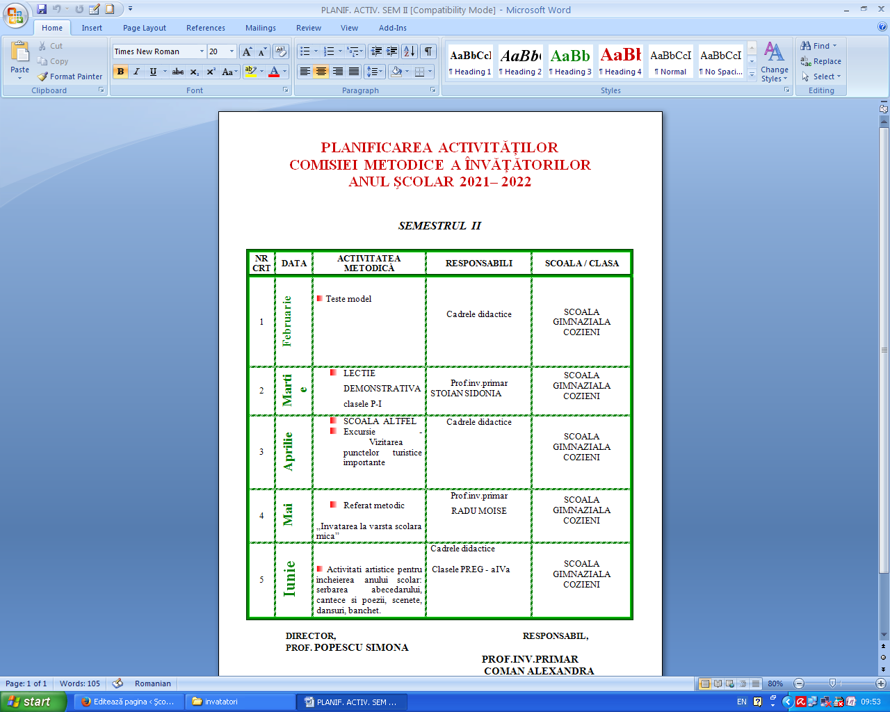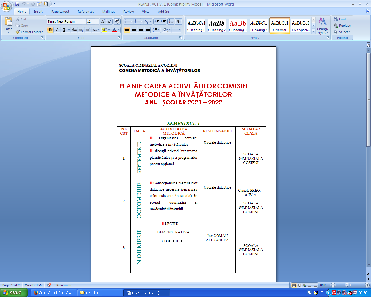 Plan de scolarizare aprobat