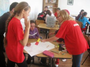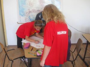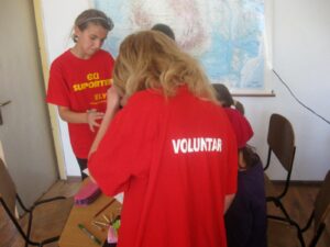 În atelierul de desen…alături de elevi, voluntara Mădălina Lazăr