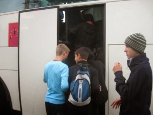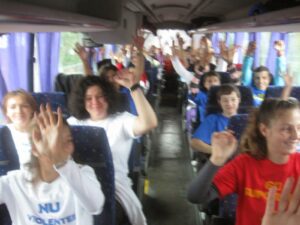 În drum cu autocarul spre Sala Sporturilor din Buzău pentru ultima etapă din cadrul Proiectului ELYS Cozieni
