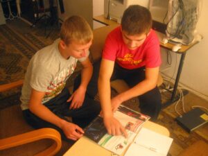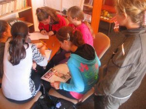 Elevii jurnalişti pregătesc materiale pentru concluzii în Centrul de Documentare şi Informare,